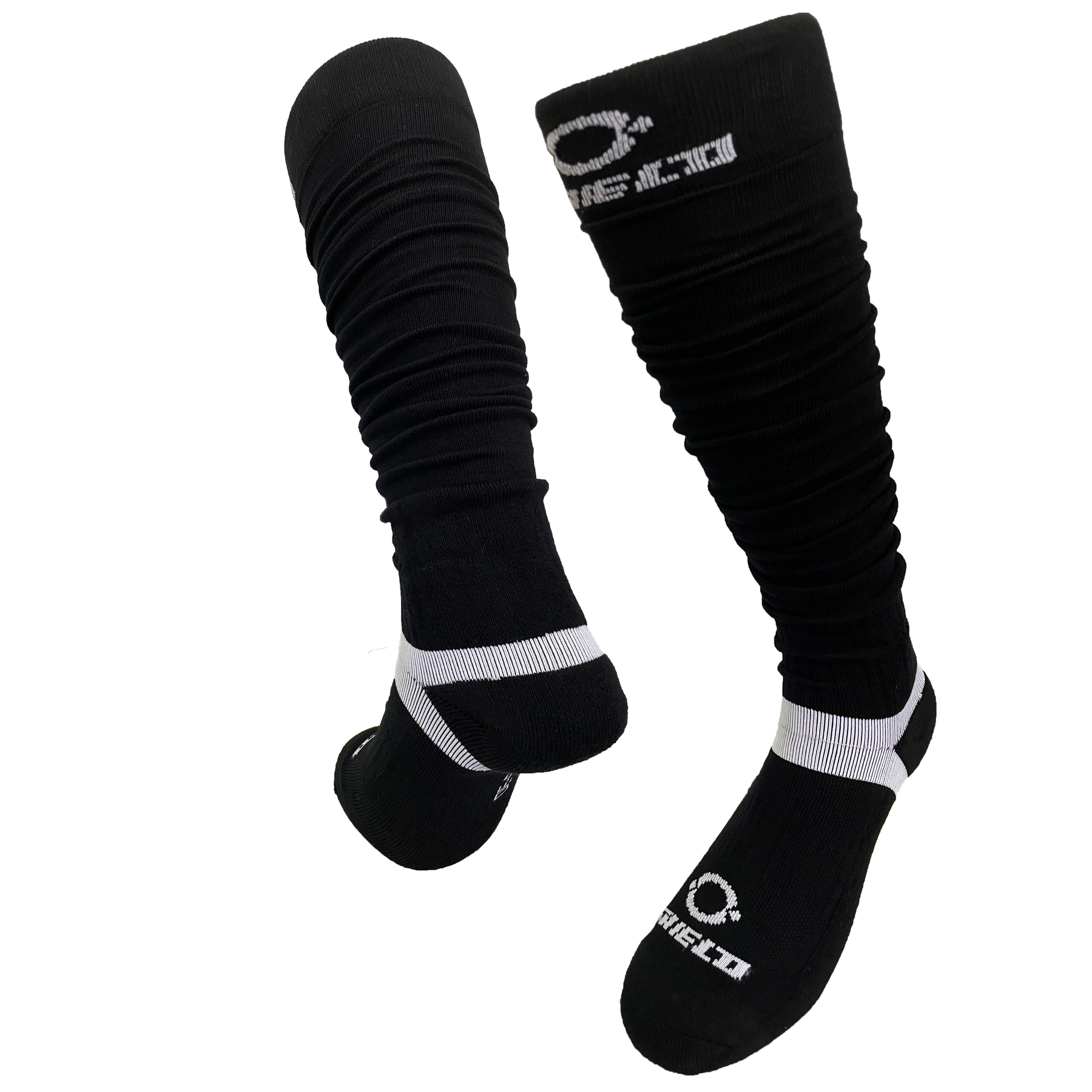 O Shield scrunch socks, football scrunch socks, extra long scrunch socks, athletic football socks, ribbed scrunch socks, padded football socks, football socks for youth, football socks for adults, gameday football accessories, breathable sports socks, cotton football socks, soccer scrunch socks, Achilles support socks, long sports socks, performance training socks.