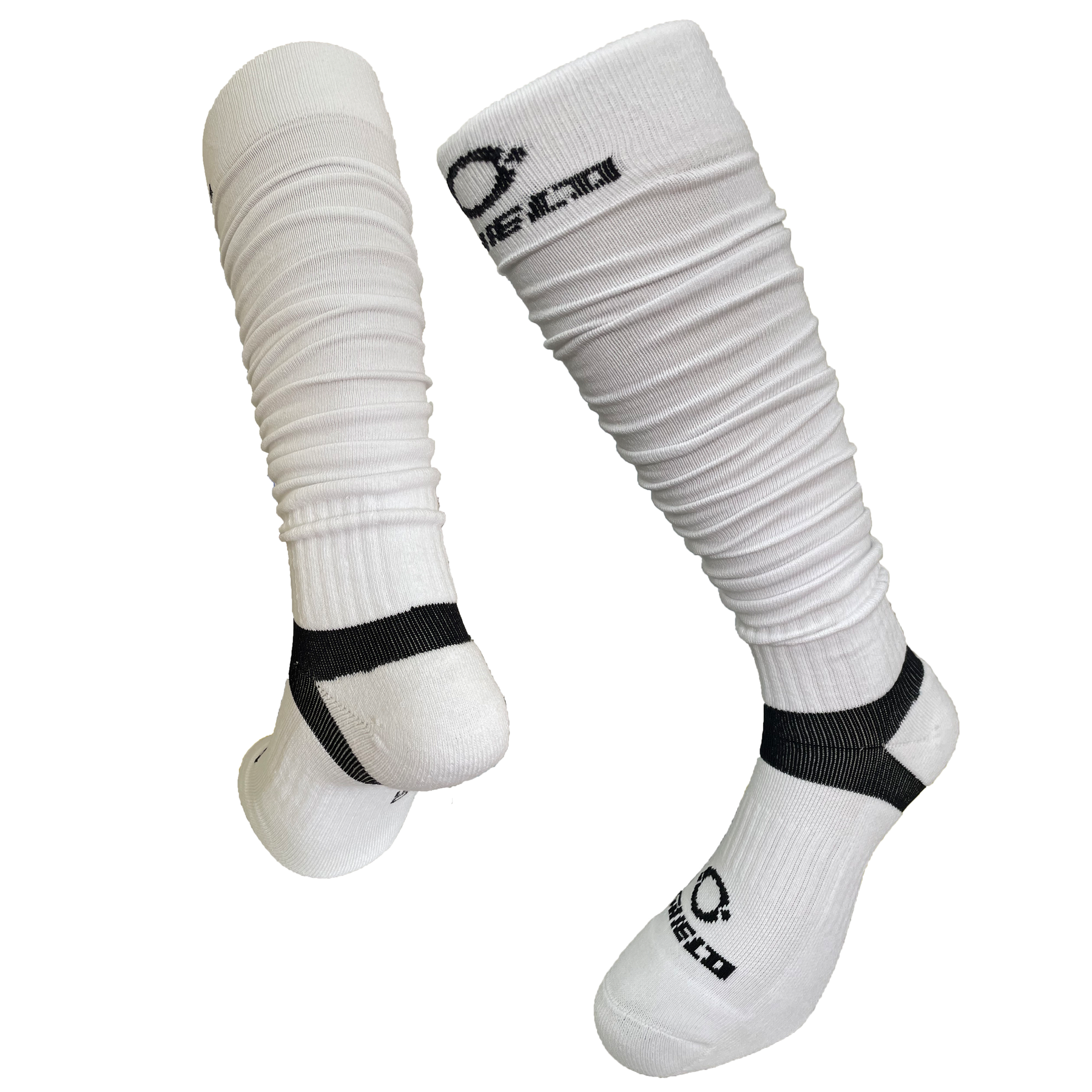 O Shield scrunch socks, football scrunch socks, extra long scrunch socks, athletic football socks, ribbed scrunch socks, padded football socks, football socks for youth, football socks for adults, gameday football accessories, breathable sports socks, cotton football socks, soccer scrunch socks, Achilles support socks, long sports socks, performance training socks.
