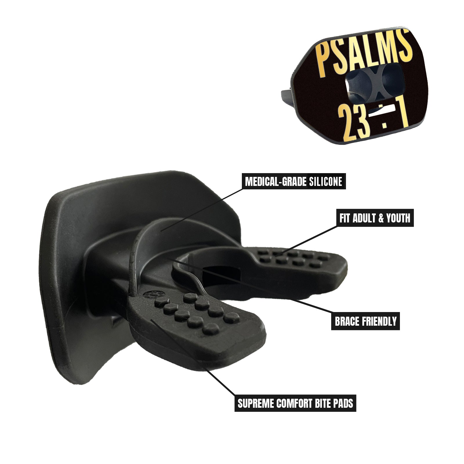 O Shield Vortex Series Football Mouthguard- PSALMS 23:1 Black
